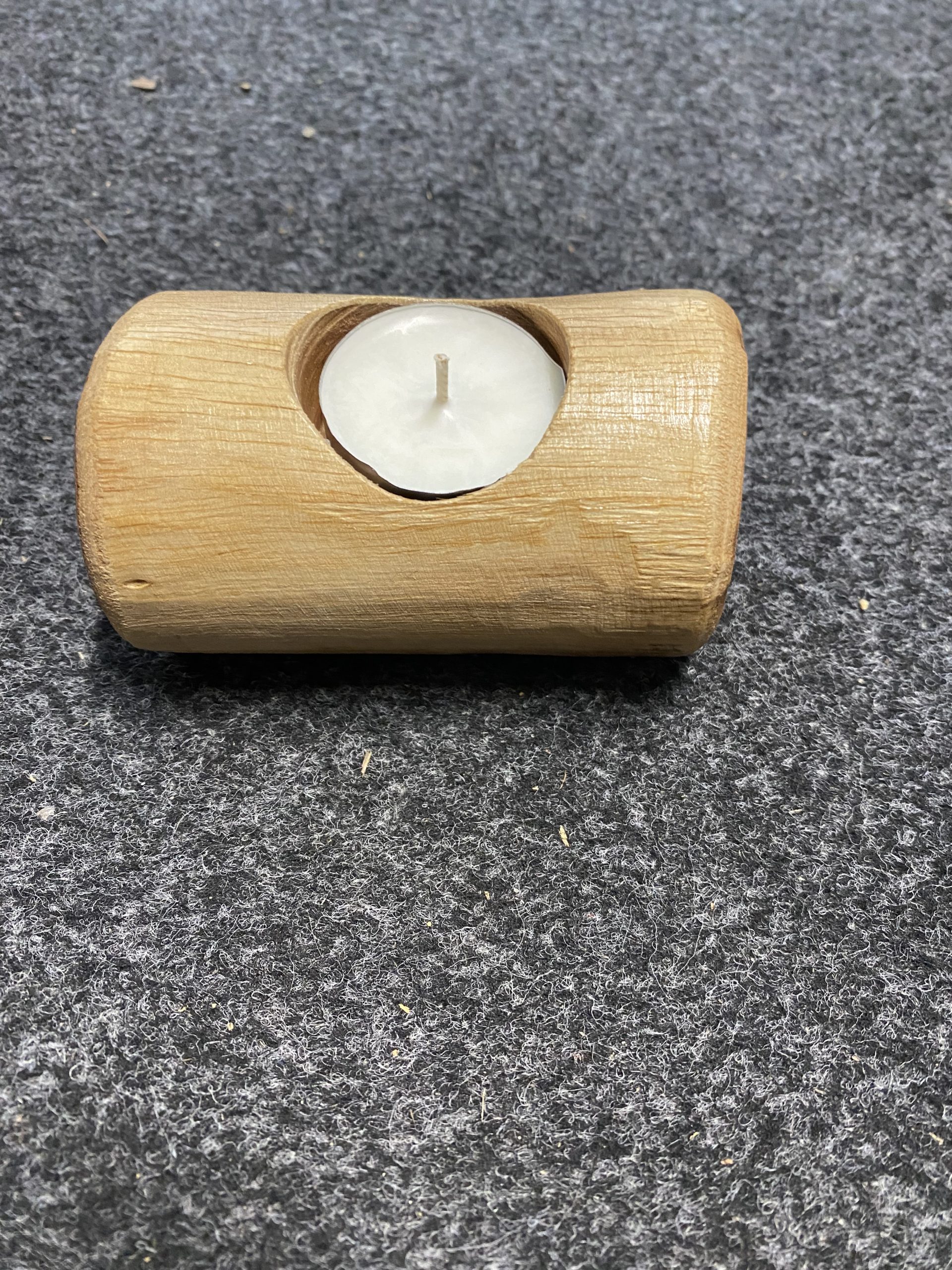 Candle holder made from wood sourced from our own land.